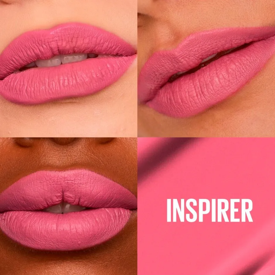 De Maybelline New York SuperStay Matte Ink 125 Inspirer Lipstick is een langhoudende roze lippenstift met een trendy, ultramatte finish die tot 16 uur blijft zitten.