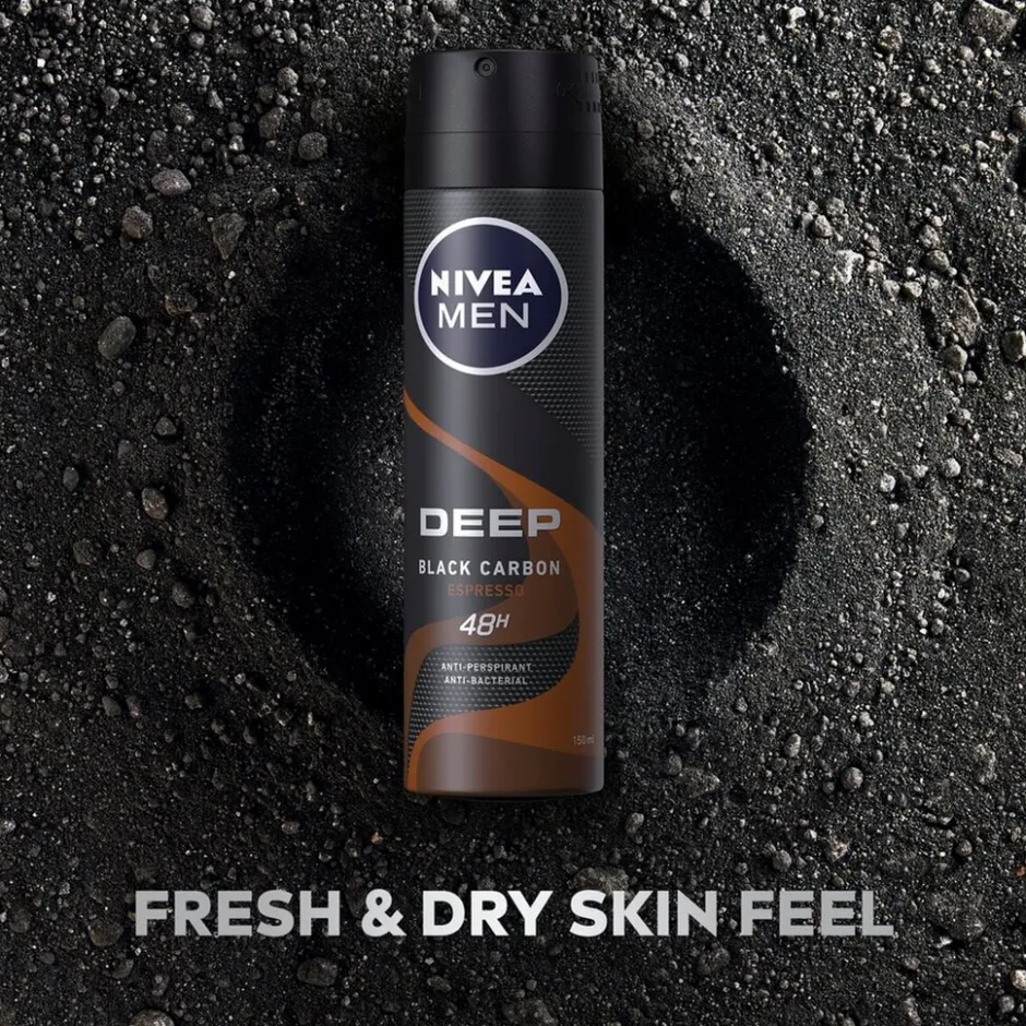De NIVEA Men Deep Espresso Antitranspirant Spray biedt 72 uur lang betrouwbare bescherming en de langdurige, sensuele geur van espresso. De spray met Black Carbon en Maxxtech geeft je een droog en schoon huidgevoel.