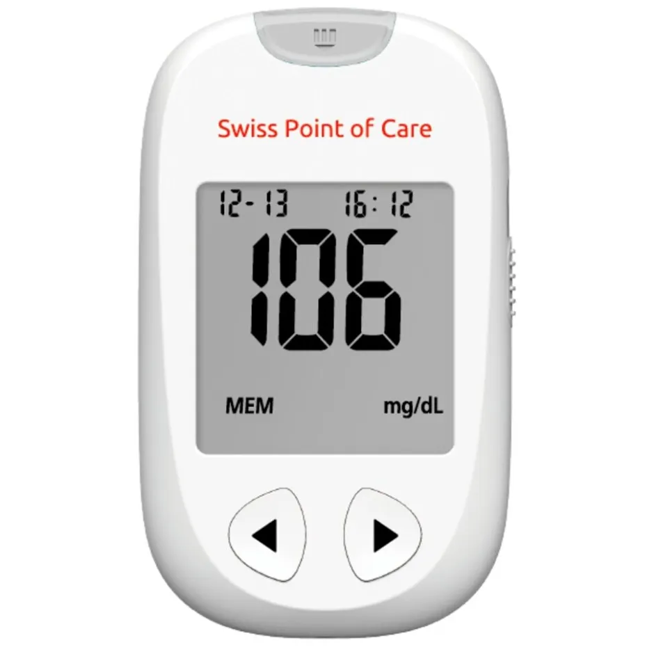 De Swiss Point of Care On Call Extra Glucosemeter werkt makkelijk, snel en zonder codering. Je switcht gemakkelijk van mg/dL naar mmol/L.