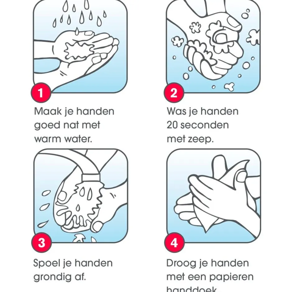 Maak eerst je handen nat met (lauw)warm water. Breng daarna Unicura Mild Handzeep aan en zeep je handen in. Zorg dat je alle handdelen goed inzeept, dus ook je vingertoppen en tussen je vingers in, en wrijf je handen goed over elkaar. Vervolgens spoel je je handen weer af onder stromend water, en droog je ze goed af met een handdoek, het liefst van papier.