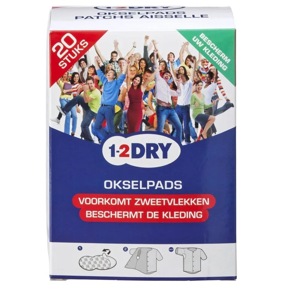Voorkom transpiratievlekken onder je oksels en bescherm je kleding met deze 1-2 DRY Okselpads. De pads hebben een absorberende werking en verlengen daarmee de levensduur van je kleding.