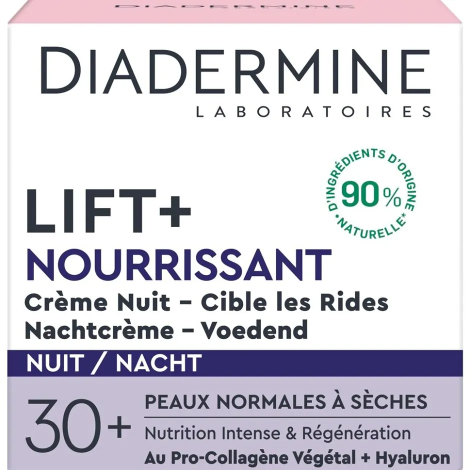 Verstevig en verzorg je huid met Diadermine Lift+ Nourrissant Nachtcrème. Deze crème voorziet je huid ’s nachts van de nodige voedingselementen. Hierdoor kan je huid volledig herstellen.