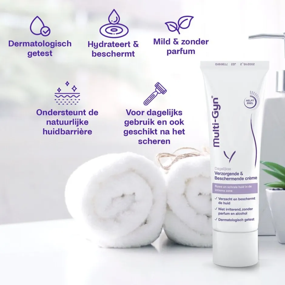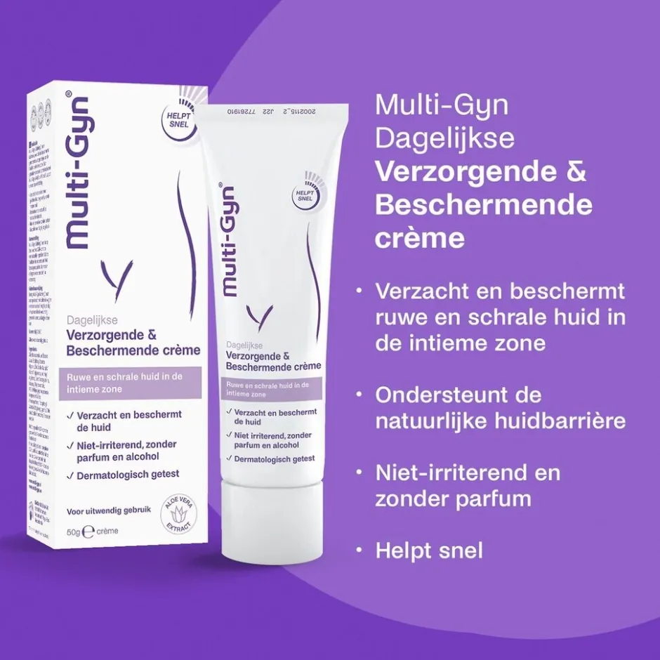 Multi-Gyn Verzorgende en Beschermende Crème verzacht en beschermt je huid.