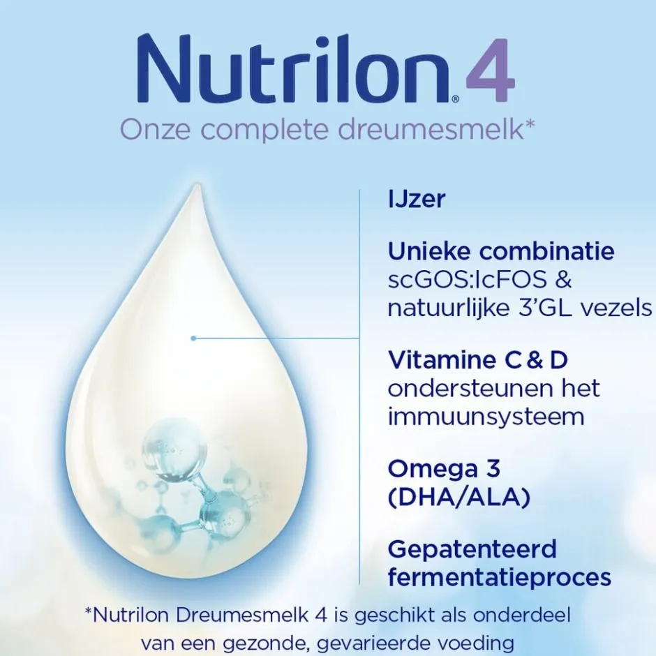 De Nutrilon 4 Dreumes- en Peutermelk met Vanillesmaak Flesvoeding Vanaf 1 Jaar wordt gebruikt als onderdeel van een gezonde en gevarieerde voeding.