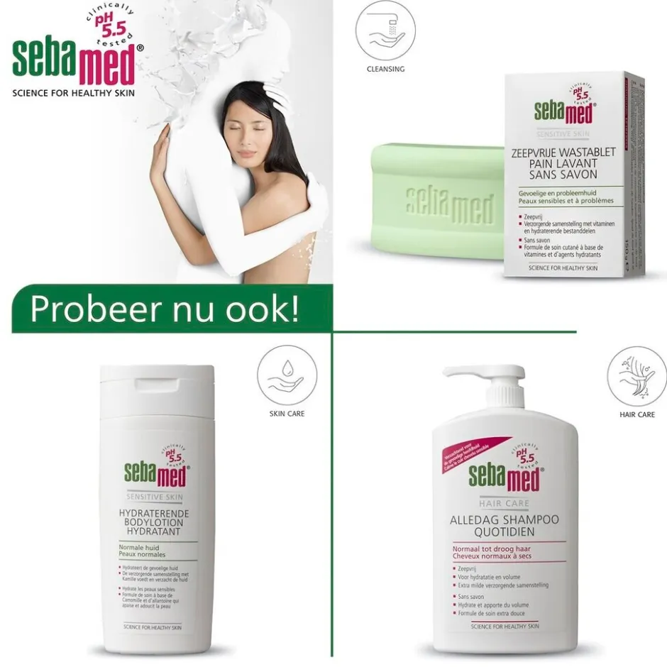 • Sebamed is geschikt voor de gevoelige huid. De huidneutrale pH-waarde van 5.5 versterkt de weerstand van de huid, waardoor de kans op irritatie, infectie en allergie vermindert. Zo blijft de huid in topconditie