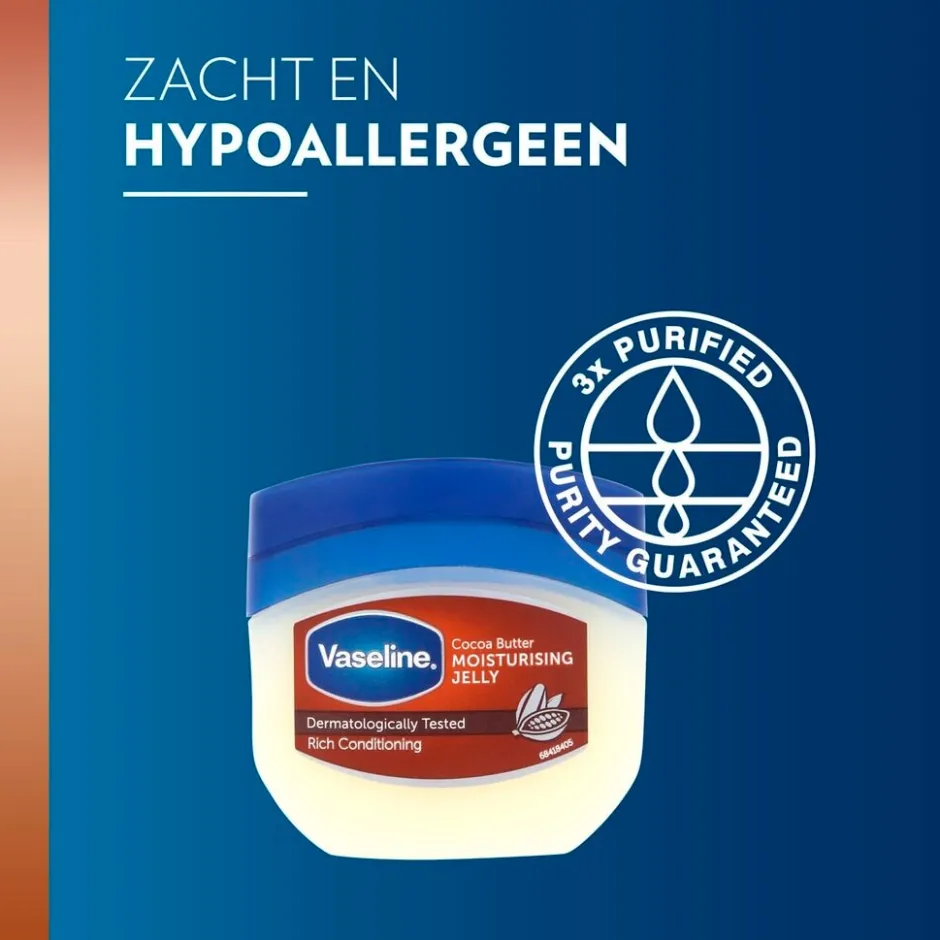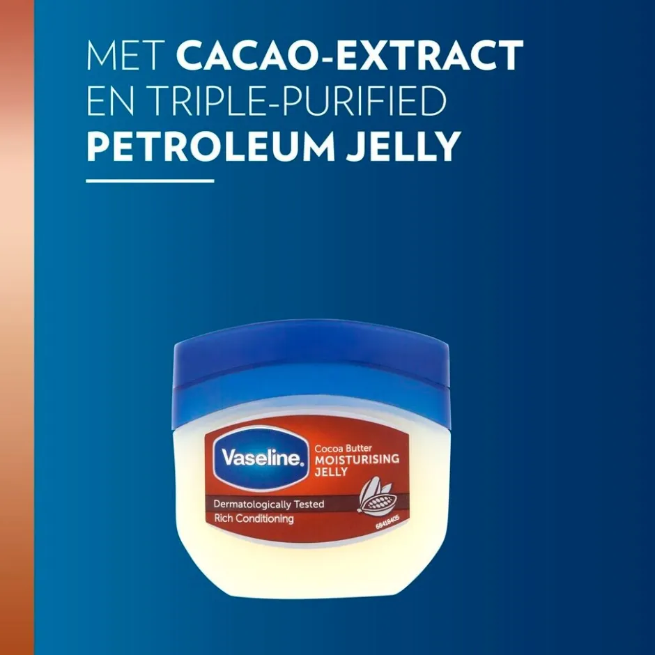 Vaseline Cocoa Butter Moisturising Jelly is gemaakt met een drievoudig zuiveringsproces voor een gegarandeerde 100% zuiverheid.