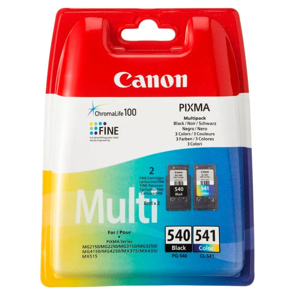 Bespaar op inkt en geniet van het gemak van de multipack Canon PG-540 / CL-541 Zwart & Kleur Inktcartridges. Deze originele Canon FINE-cartridges leveren buitengewone resultaten die een leven lang meegaan.