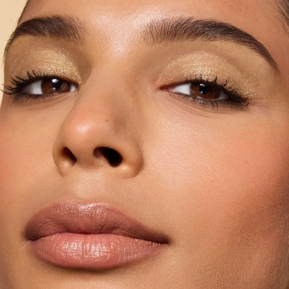 Breng met een schone vinger of kwastje over je oogschaduw aan voor highlight en dimensie of dep op je blote oogleden voor een subtiele schittering.