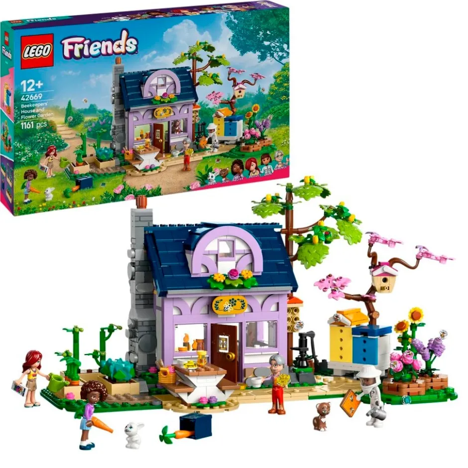 De LEGO Friends 42669 Imkershuis en Bloementuin is een huis- en tuinmodel van twee verdiepingen. Zet het met trots neer. Het huisje komt inclusief een tuin met bloemen en bomen, bijenkorven, een speelgoedwinkel en een slaapkamer.