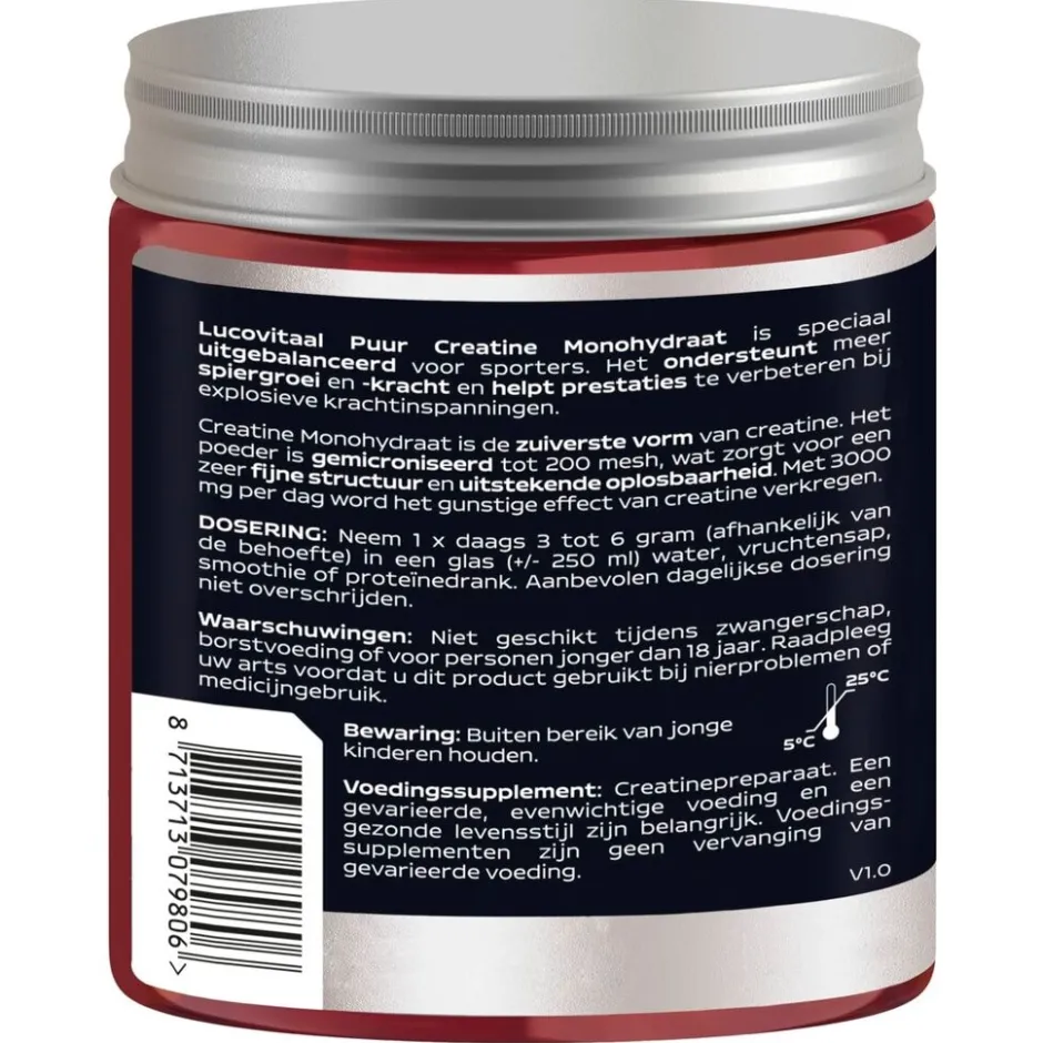 Lucovitaal Puur Creatine 100% Monohydraat Poeder is speciaal uitgebalanceerd voor sporters. Het ondersteunt meer spiergroei en -kracht en helpt prestaties te verbeteren bij explosieve krachtinspanningen.