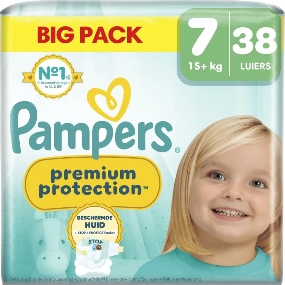 Pampers Premium Protection Maat 7, 38 Luiers, 15kg+;Volledige Omschrijving|Pampers Premium Protection Maat 7, 38 Luiers, 15kg+