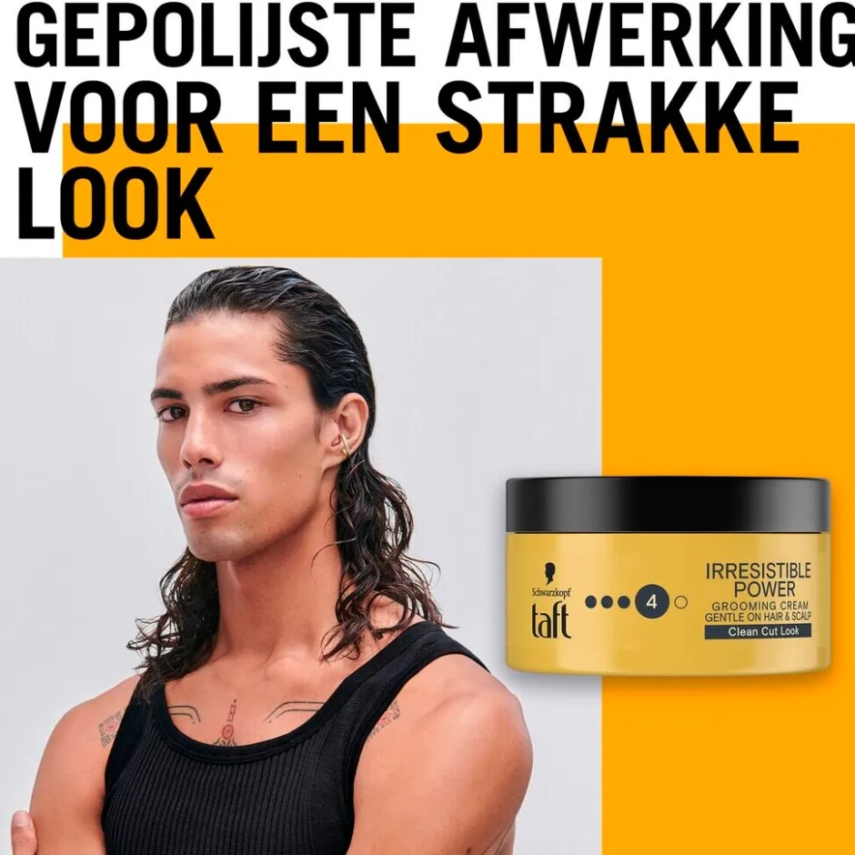 Taft Irresistible Power Grooming Cream helpt je haar te beschermen tegen uitdroging en geeft een mooie natuurlijke finish. De cream is zacht voor je haar en je hoofdhuid en bevat hydraterende panthenol.