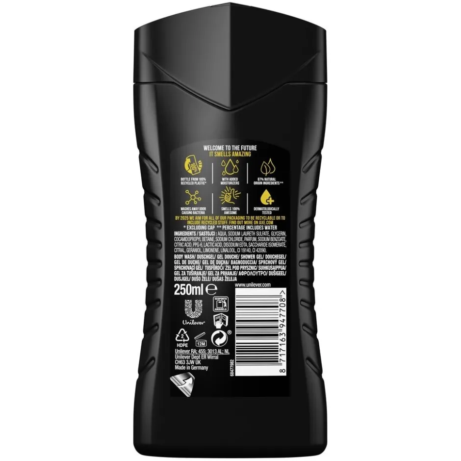 • Axe douchegel is verpakt in een 100% gerecyclede en recyclebare fles