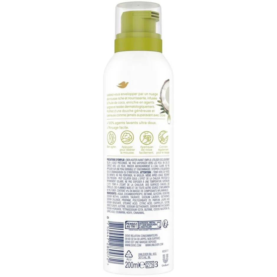 Met Dove Coconut Oil Shower Mousse kun je jezelf wassen en scheren. De mousse voedt en hydrateert je huid. Je huid voelt daardoor sterk aan en wordt beschermd tegen irritatie en uitdroging.