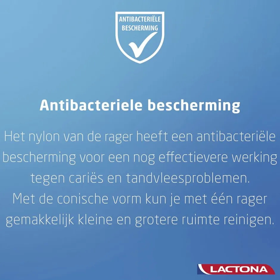 Lactona Easydent A 2.5/5.0 mm Ragers zijn nylon ragers met antibacteriële bescherming voor een nog effectievere werking tegen cariës en tandvleesproblemen.