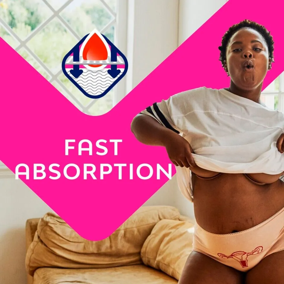 • Snelle absorptie door de drie absorptiezones, perfect voor hevige menstruaties