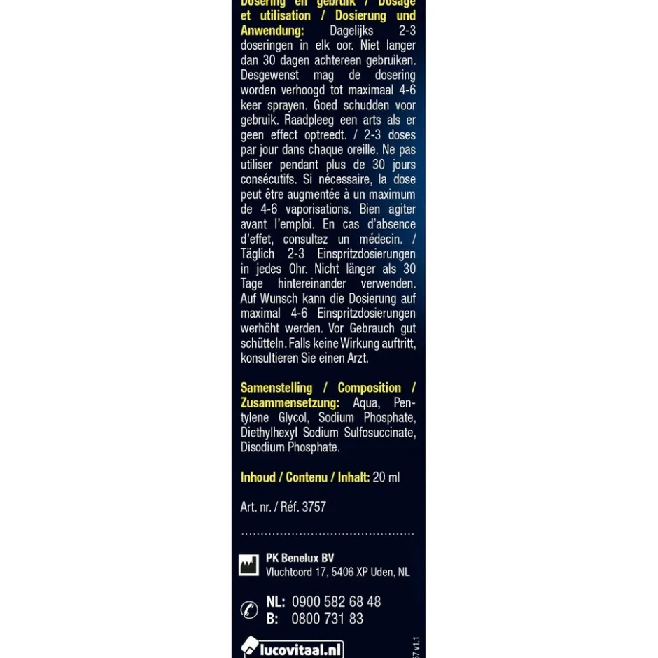 Lucovitaal Oorspray voorkomt ophoping van oorsmeer en lost overtollige oorsmeer op. De spray reinigt en verzorgt.