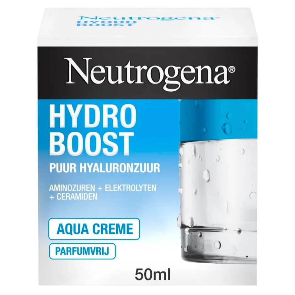 De Neutrogena Hydro Boost Aqua Dag- en Nachtcrème is vrij van parfum, geschikt voor de droge huid en ontwikkeld in samenwerking met dermatologen.