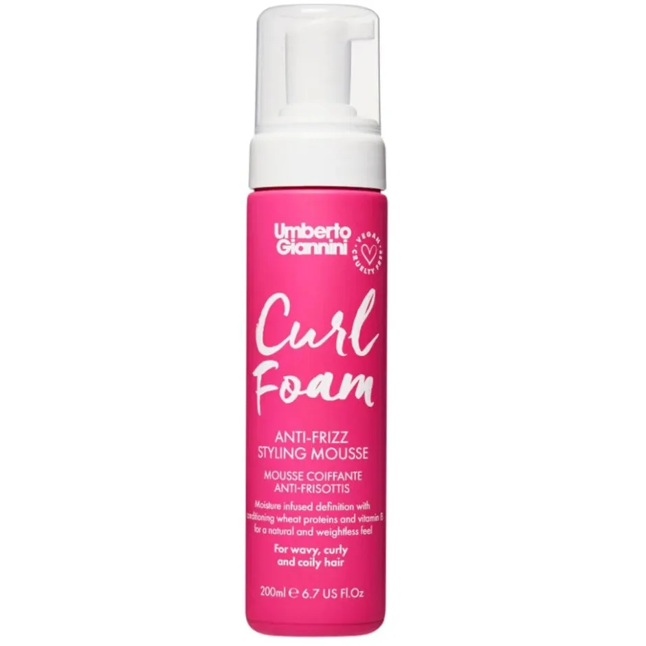 De met proteïne verrijkte Umberto Giannini Anti-Frizz Foam Curl hydrateert en herstelt golven, krullen en coils voor een zijdezachte, lichte afwerking met flexibele fixatie. Geen plakkerige of harde krullen in zicht! De 93% natuurlijke formule definieert moeiteloos natuurlijke krullen, zonder je haar ooit te verzwaren.