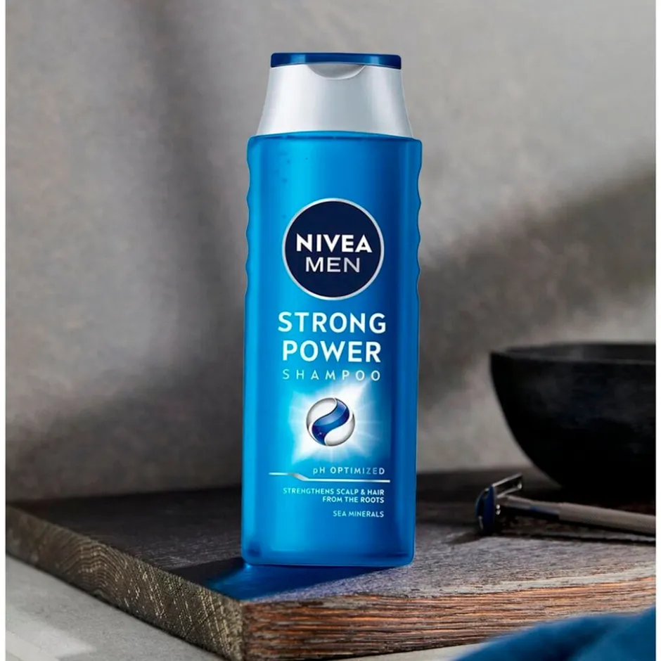 De NIVEA Men Strong Power Shampoo is verrijkt met zeemineralen, maakt je haar sterker en geeft het een gezonde uitstraling. De formule is mild voor je haar en hoofdhuid, en geschikt voor dagelijks gebruik.