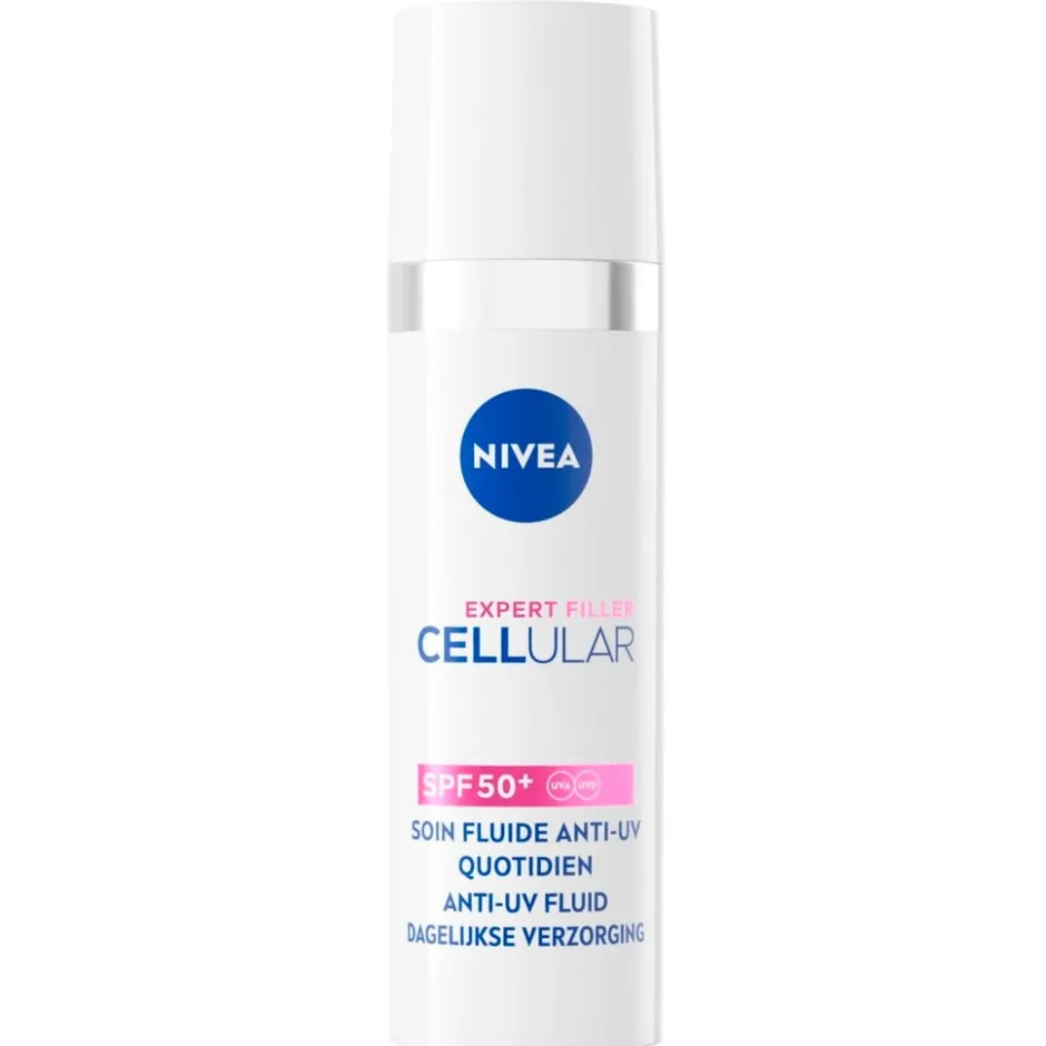 De NIVEA Cellular Expert Filler Anti-Uv Daily Fluid zorgt voor directe hydratatie, corrigeert en voorkomt huidveroudering.