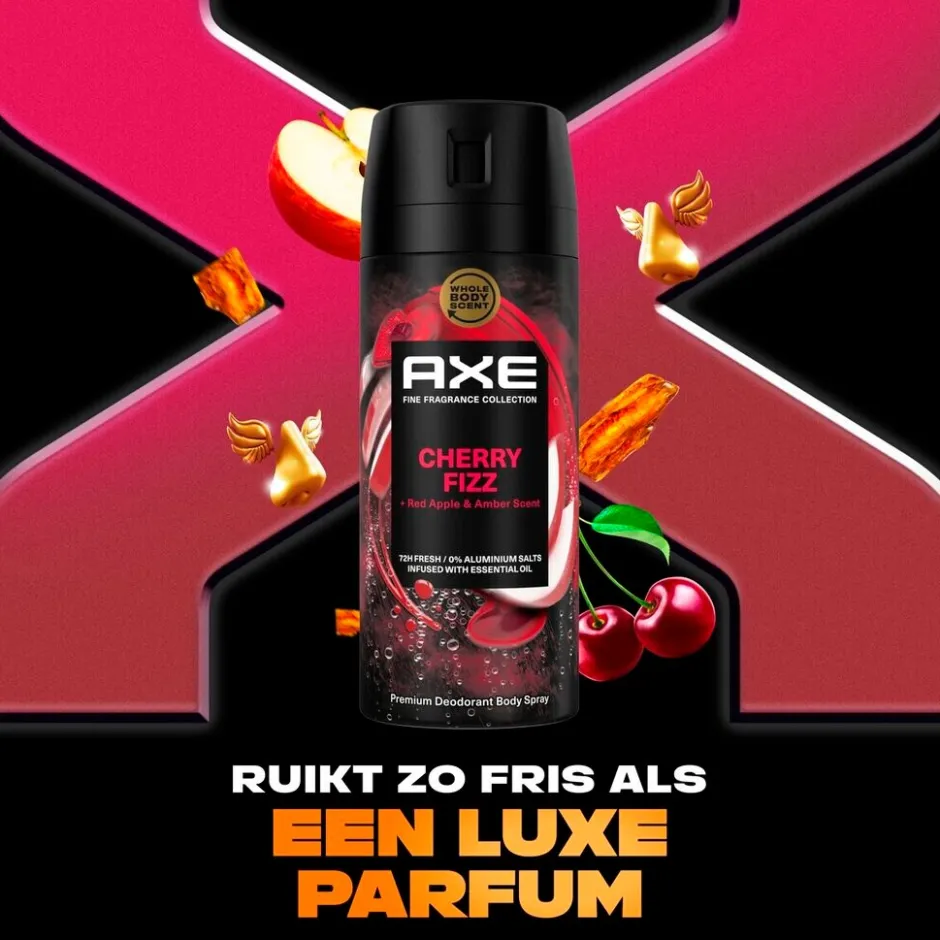 Met Axe Fine Fragrance Cherry Fizz Deodorant Bodyspray ruik je onweerstaanbaar.