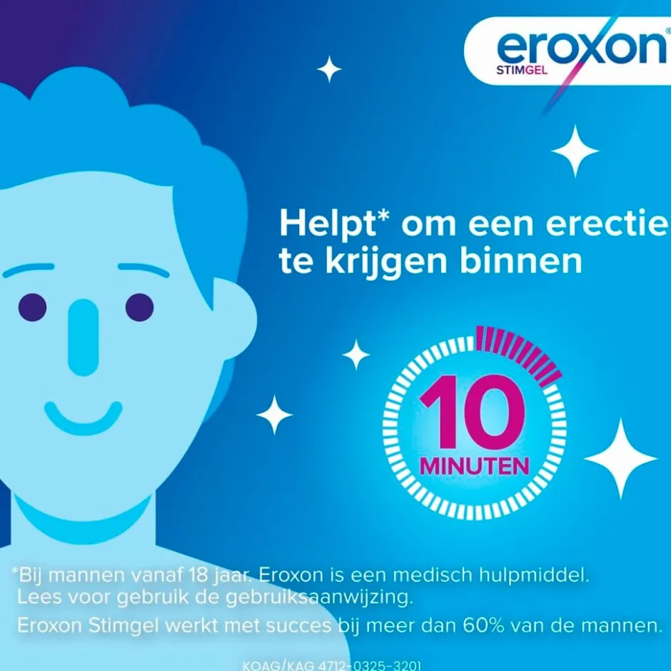 Eroxon Stimgel is een klinisch bewezen behandeling tegen erectiestoornissen voor mannen vanaf 18 jaar. Eroxon helpt om binnen tien minuten een erectie te krijgen.