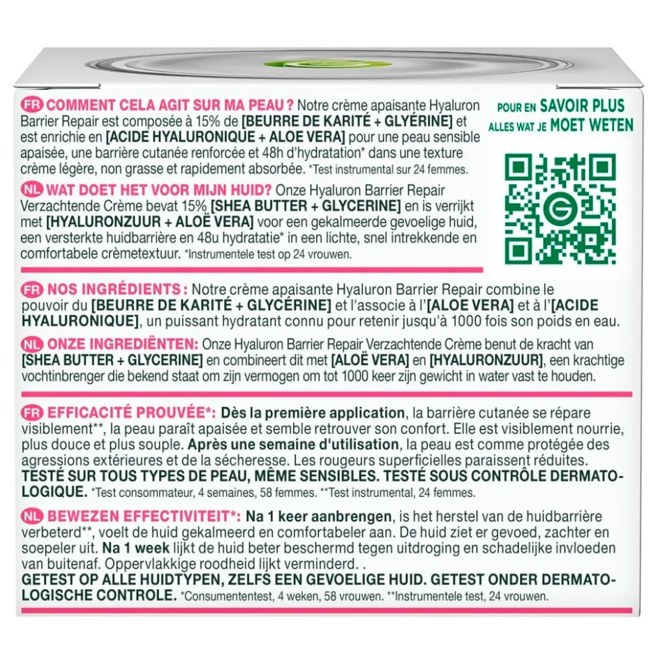 Na 4 weken: je huid is zichtbaar intens gehydrateerd en voller volgens 84% van de vrouwen, gevoed volgens 93%, gekalmeerd volgens 84%, beschermd tegen droogheid volgens 93% en meer comfortabel volgens 93%***.