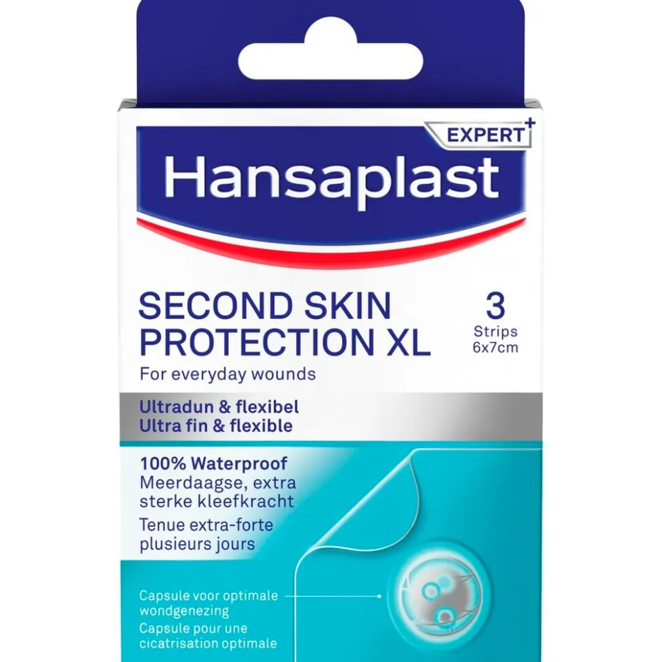De Hansaplast Expert+ Second Skin Protection XL Pleisters zijn flexibele, zelfhechtende pleisters voor grotere alledaagse wonden.