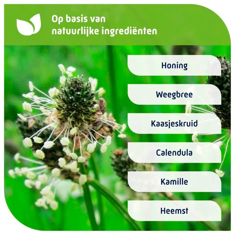• Bevat natuurlijke plantenextracten (linden, weegbree, kaasjeskruid, heemst, grindelia en calendula)