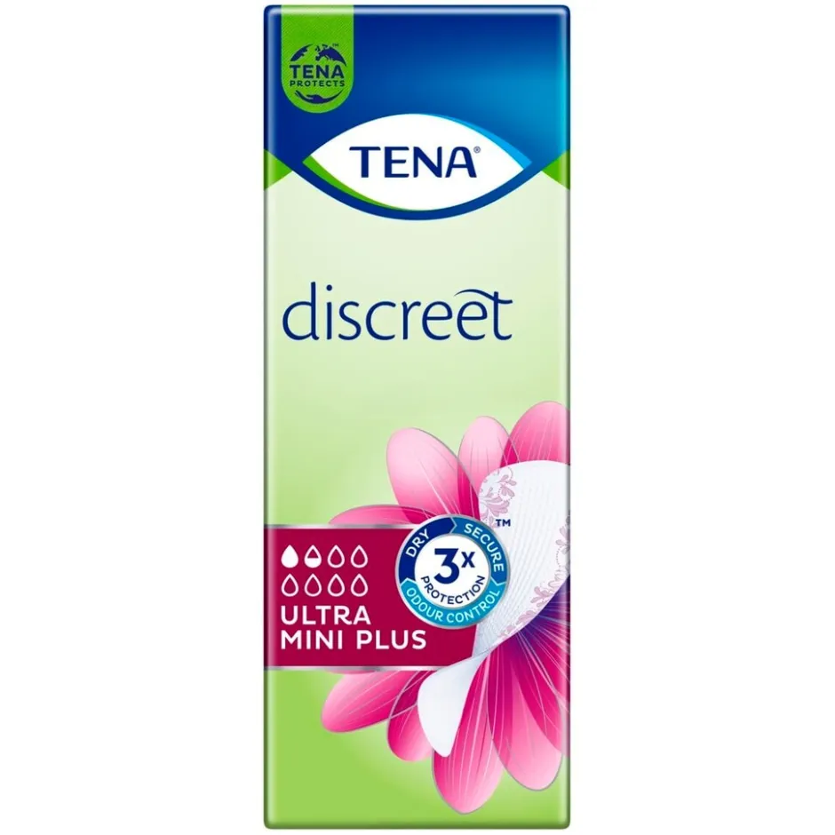 Tena Lady Discreet Ultra Mini Plus Inlegkruisjes bieden je drievoudige bescherming tegen doorlekken, geurtjes en een vochtig gevoel. Deze inlegkruisjes zijn net zo dun, maar absorberen veel beter dan reguliere inlegkruisjes.