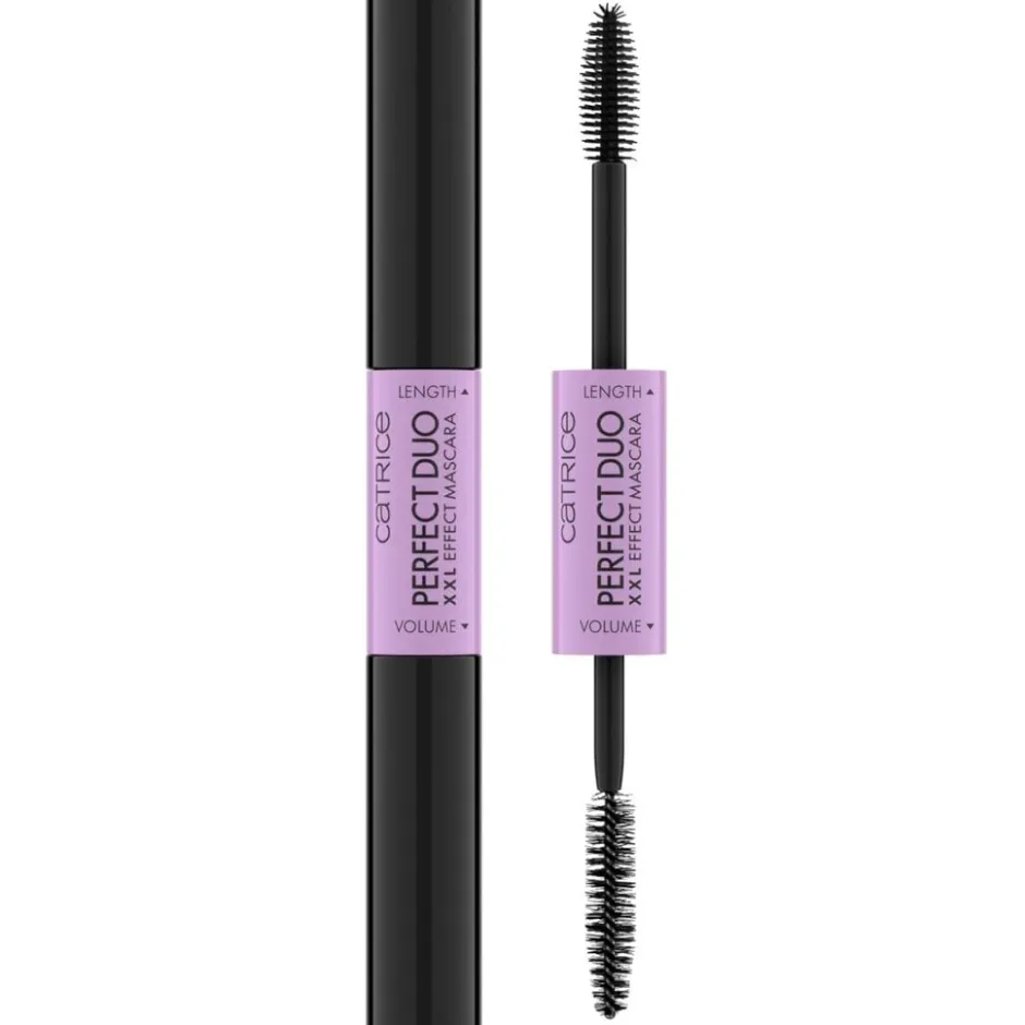 Dankzij de twee borstels zorgt de Catrice Perfect Duo 010 Zwart XXL Effect Mascara niet alleen voor lengte, maar hij geeft je wimpers ook een intens zwarte kleur en XXL-volume.