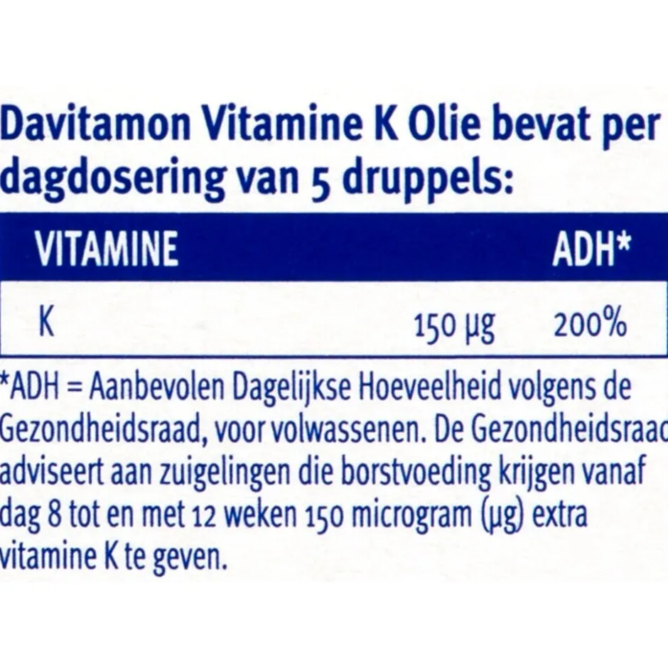 Krijgt jouw baby borstvoeding? Overweeg dan een voedingssupplement met vitamine K, zoals Davitamon Vitamine K Olie.