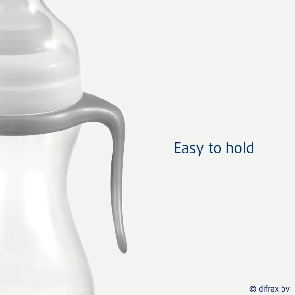 De Difrax XL Papfles met anti-koliekwerking is geschikt voor maximaal 310 ml pap. De papfles heeft een extra brede speenopening voor extra grove granenpap. Door de handgrepen kan je kindje zelf rustig drinken.