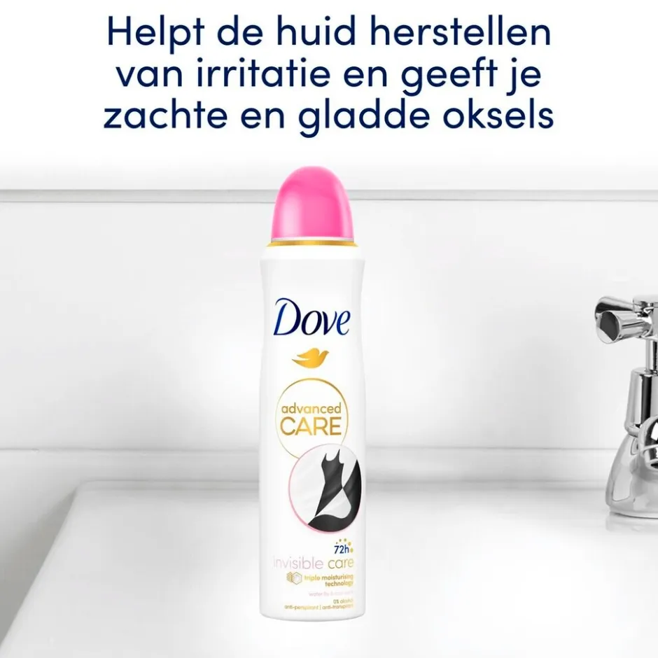 Deze spray behoort tot de meest verzorgende lijn van Dove, dankzij de verbeterde gepatenteerde formule die vriendelijk is voor je huid, zelfs na het scheren. Dove biedt met trots de Triple Moisturising technologie, die je tot wel 72 uur bescherming tegen transpiratie en zweet garandeert, zonder witte strepen of gele vlekken achter te laten. Zo kun je de hele dag genieten van een fris en verzorgd gevoel, wat je ook van plan bent te ondernemen!