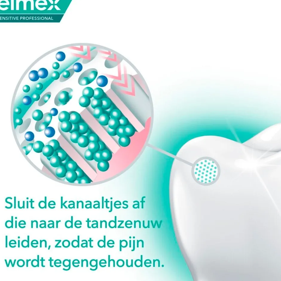 *Wanneer Elmex Sensitive Professional tandpasta tweemaal daags met een vingertop 1 minuut op de gevoelige tand wordt aangebracht, werkt het direct en biedt directe pijnverlichting. Regelmatig gebruik geeft langdurige pijnverlichting.