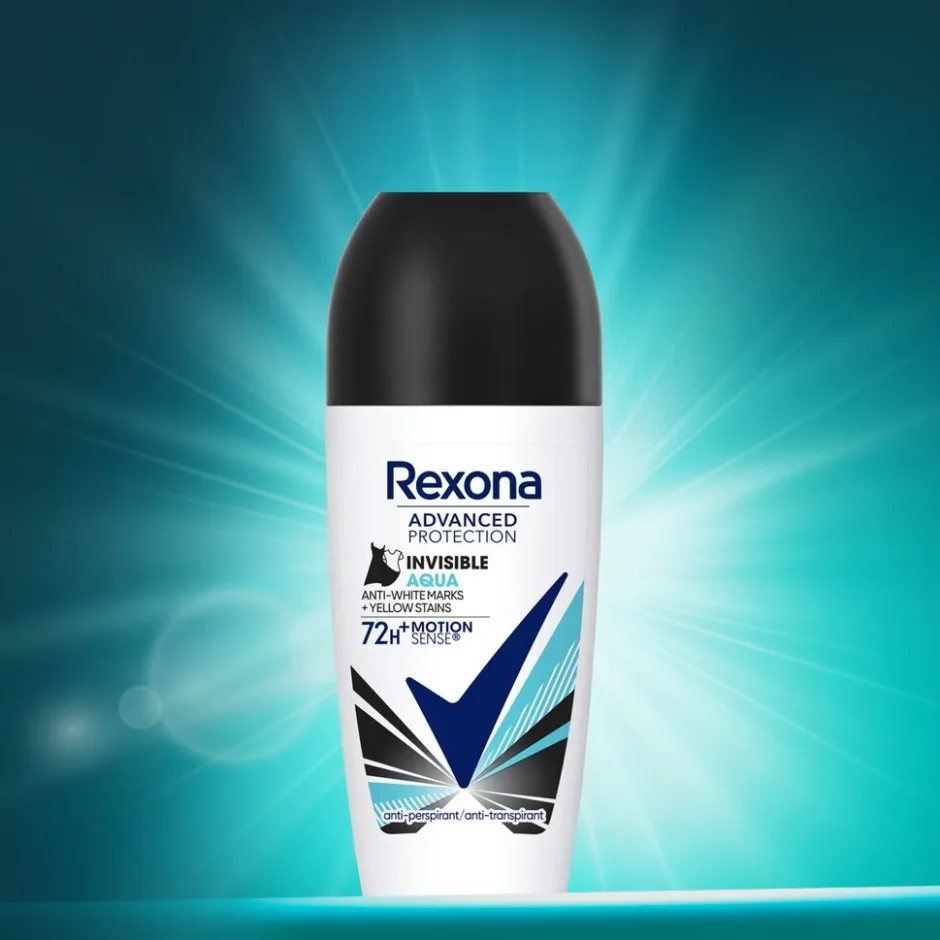 De Rexona Advanced Protection Invisible Aqua Antitranspirant Roller met MotionSense Technologie geeft je tot 72 uur effectieve en betrouwbare bescherming tegen zweet en lichaamsgeurtjes én tegen gele vlekken en witte strepen.