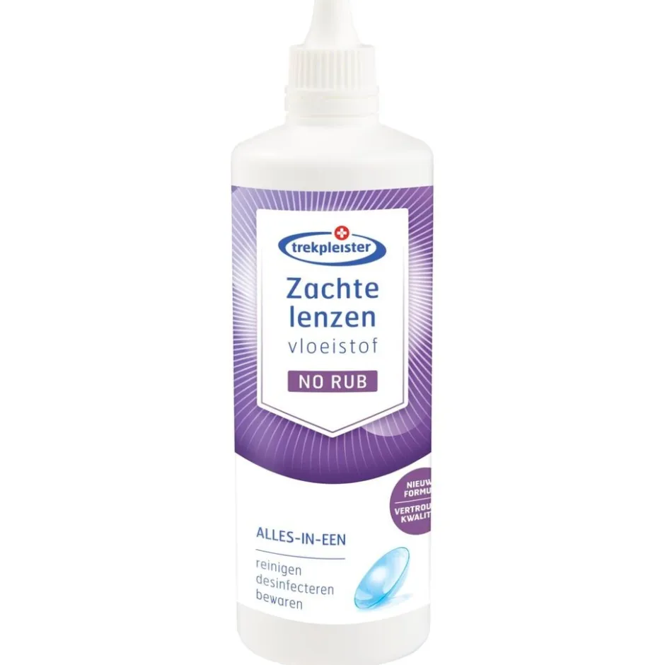Onderhoud je zachte contactlenzen snel en gemakkelijk met deze Trekpleister Alles-In-Een No Rub Contactlenzenvloeistof voor Zachte Lenzen. De vloeistof is geschikt voor het schoonmaken, bewaren en inzetten van zachte contactlenzen.