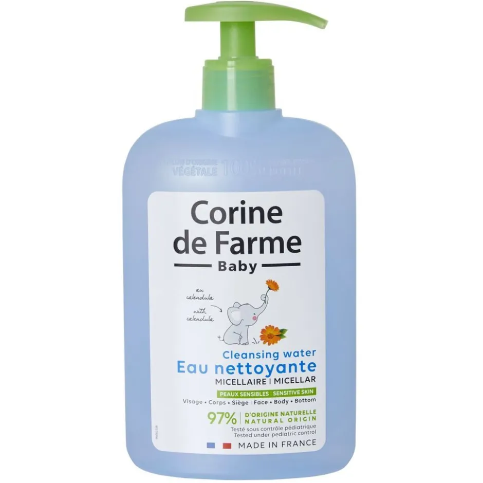 Reinig en verwijder in alle zachtheid de onzuiverheden van het gezicht, het lichaam en de babybilletjes met dit Corine de Farme Calendula Micellair Reinigingswater.