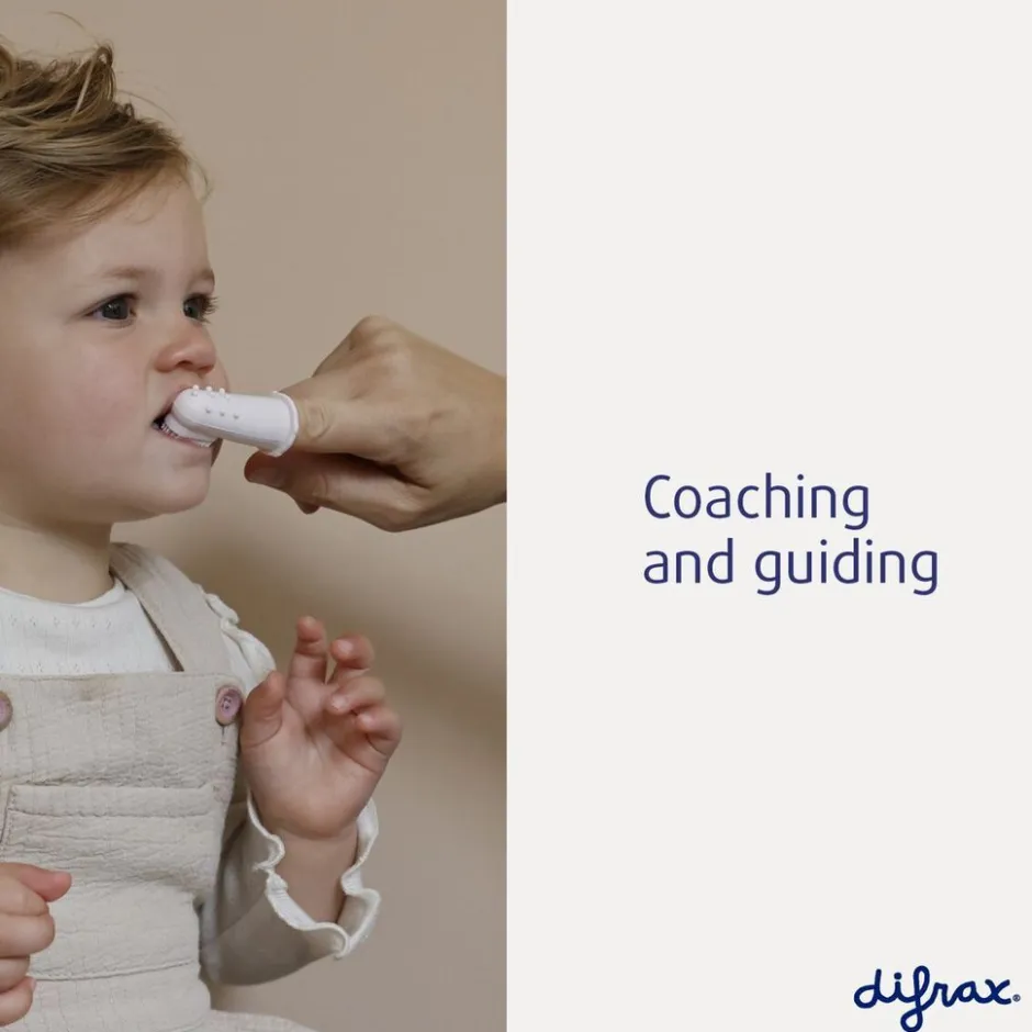 Met de Difrax Baby Vingertop Tandenborstel poets je spelenderwijs je baby’s tandjes. Zo maak je makkelijk een goed begin met de mondverzorging. Door een massage van het tandvlees verlicht je de pijn van doorkomende tandjes.