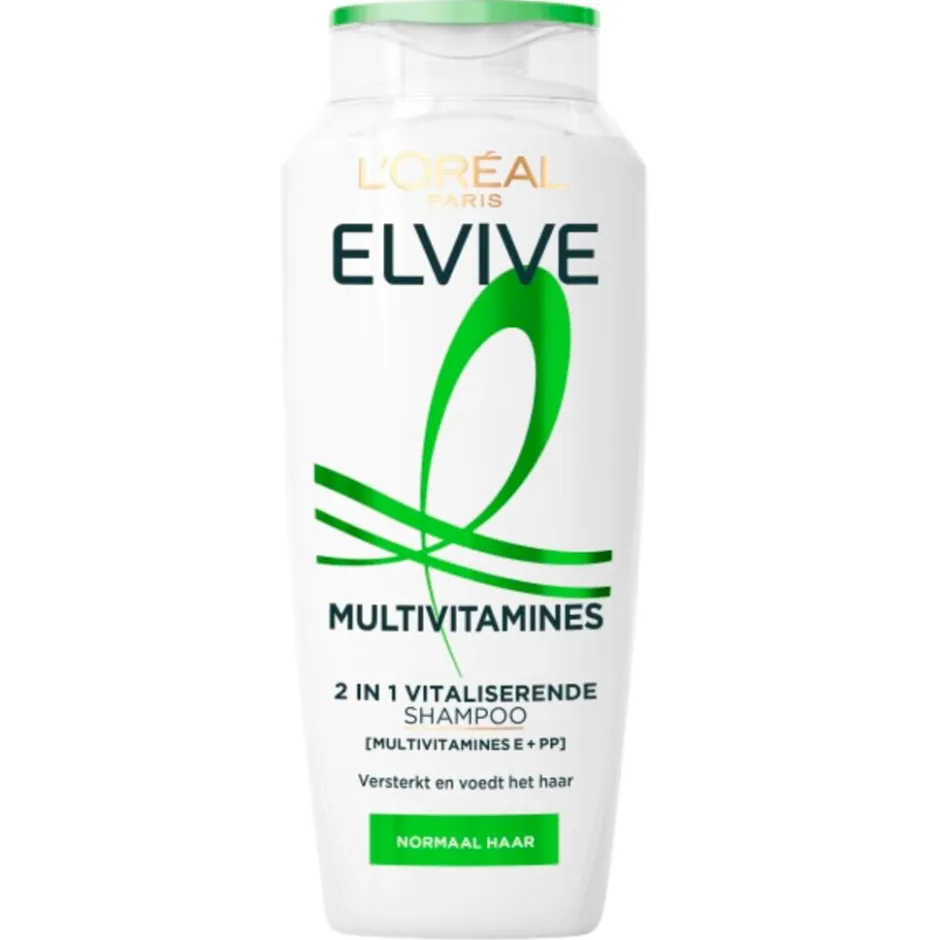 Heb je normaal haar en zoek je een shampoo die je haar kracht en glans geeft? L’Oréal Paris Elvive Multivitamines 2-In-1 Verzorgende Shampoo bevat provitamine B5, PP en E, welke je haar sterk, glanzend en veerkrachtig maken.