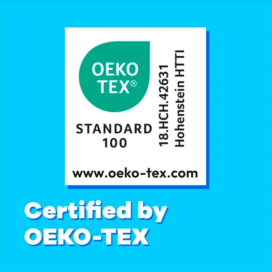 • Standard 100 gecertificeerd en onafhankelijk getest op schadelijke stoffen door Oeko-Tex