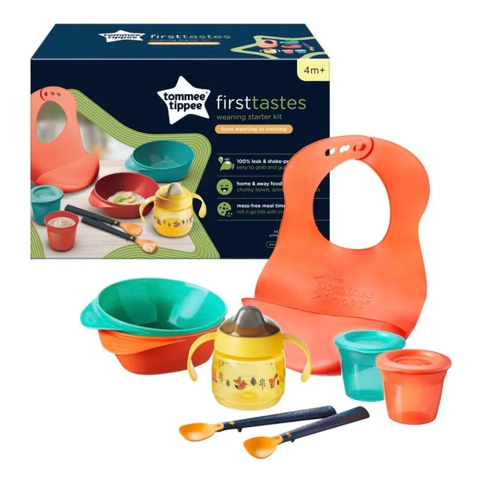 De handige Tommee Tippee 4+M Weaning Starter Kit bevat alles wat je nodig hebt om vast voedsel aan je baby te introduceren. Geniet van zorgeloze maaltijden en hou het netjes.