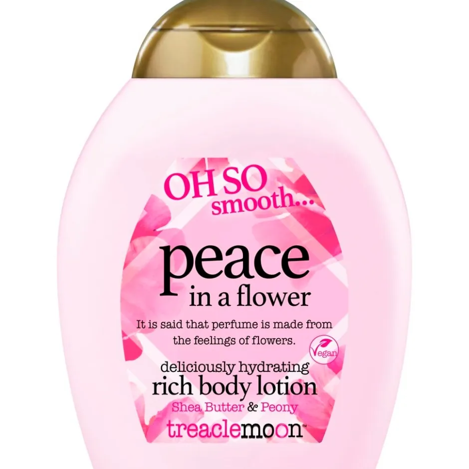 De Treaclemoon Peace In A Flower Bodylotion is alsof je door een verborgen tuin wandelt, waar de bloemen fluisteren in de ochtendzon en een vleugje betovering meedragen.
